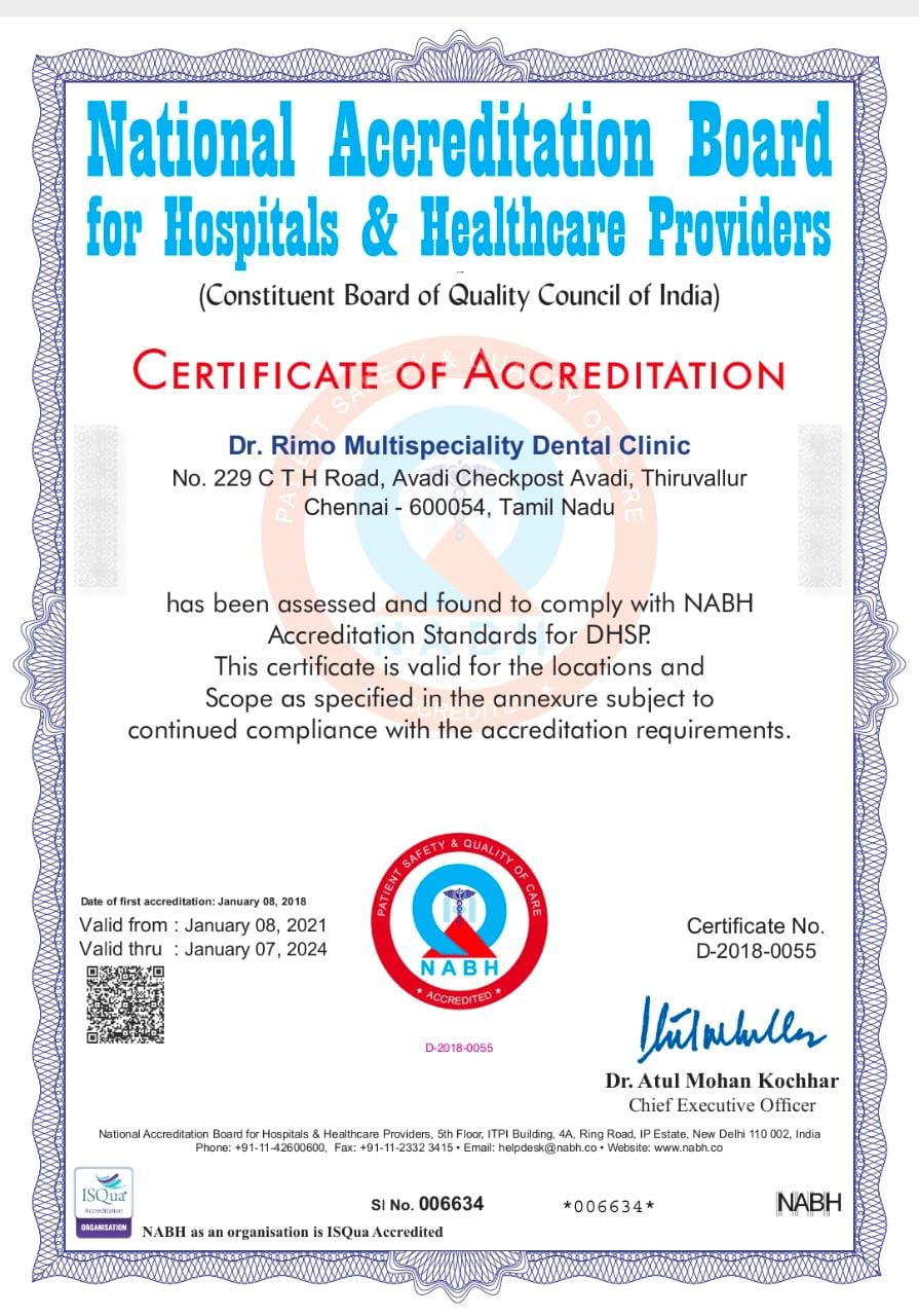 I am Mrs Latha Muthukumar CGHS pensioner been referred from Annagar CGHS polyclinic I had come and done about 6 RCTS followed by ceramic bridging at DR Rimo Multispecality dental clinic by Dr RIMO. DR.Rimo is too pleasing and I was too much comfortable and satisfied with my dental treatment and I suggest the fellow patients to come and visit the following clinic and get an best treatment from Dr.Rimo.